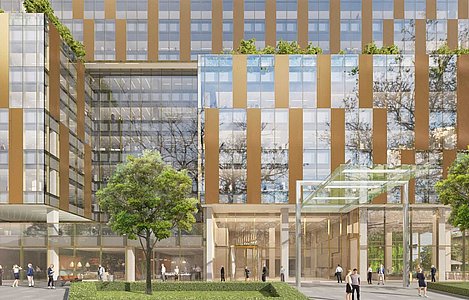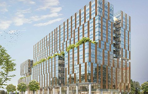 - Bürogebäude mit komplementären Funktionen Rhmax 3 Untergeschosse + Erdgeschoss + 9 Stockwerke/11 Stockwerke + Technikgeschoss