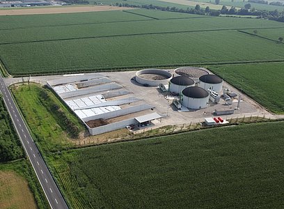- Produktion von Biomethan - die Hauptmenge an Biomasse wird auf 150 ha Pachtland selbst produziert