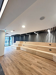 - Verkabelung und Montage der neuen Beleuchtung bestehend aus Downlights, Stromschienen, direkt – und indirekt leuchtenden Lichtschienen