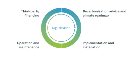 We make the energy supply for your properties climate-neutral. No matter what stage you’re at. Right at the beginning or in the middle of it all. We have everything you need to decarbonise your portfolio and make it energy-efficient. Strategy and planning, implementation and construction management, third-party financing. Comprehensive, modular solutions that help you achieve your climate targets. Set milestones. We can support you for either some or all of your journey.