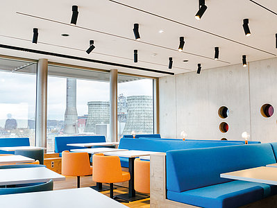 The team from Elektro Decker had to equip seven above-ground floors, including a staggered floor and a partial basement for technical areas, with all high-voltage and low-voltage applications. This included the modern room installation for a total of 202 rooms - including 26 CarLoft suites - as well as programmable lighting control in the meeting rooms and circulation areas, and the installation of various safety devices including a backup power supply system and fire alarm system.